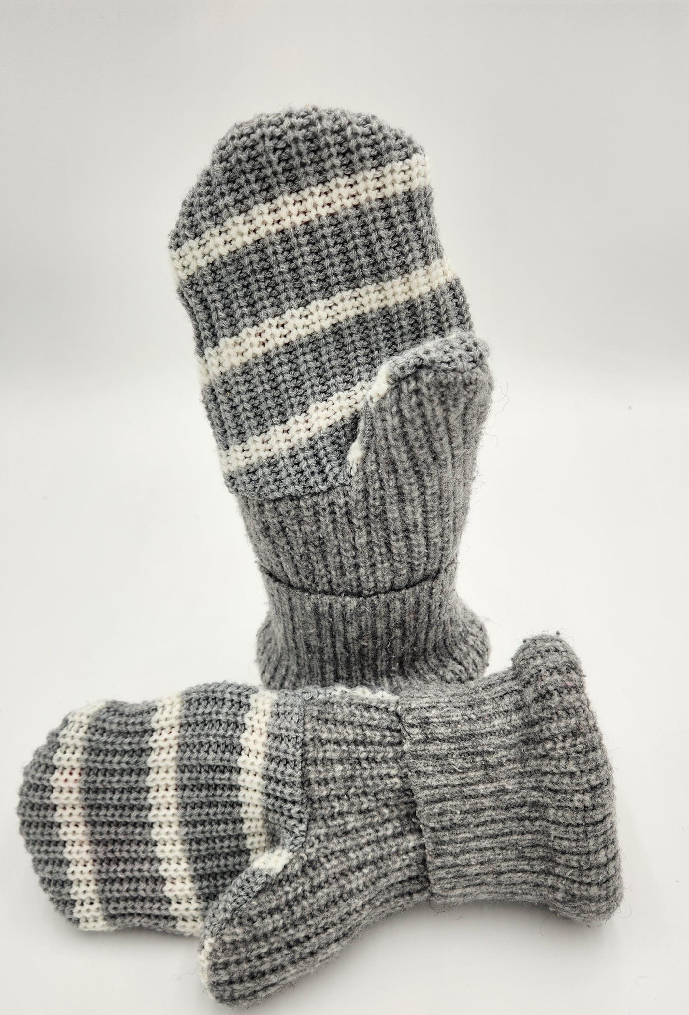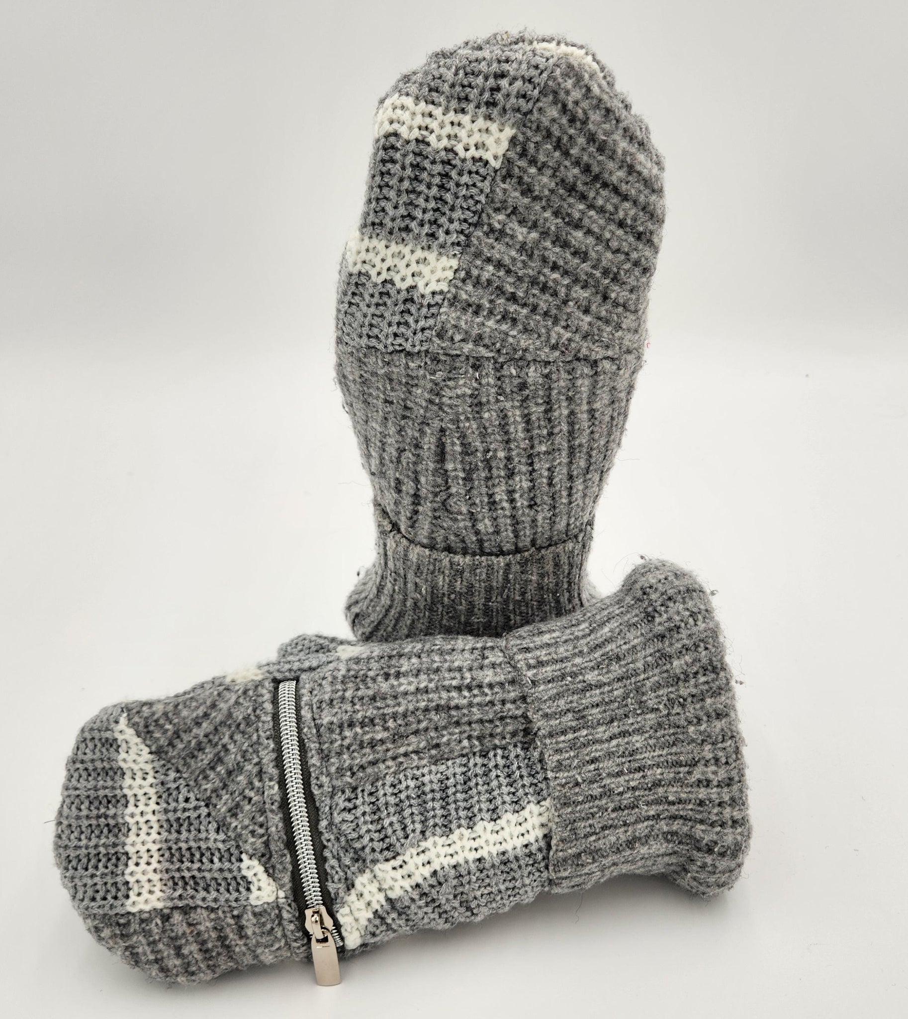 These cozy mittens are handmade from repurposed fabrics, making them both eco-friendly and stylish. The design features a functional zipper pocket, perfect for tucking away small essentials like lip balm or a key. Fully lined for extra warmth, these mittens blend practicality with charm, keeping your hands toasty while adding a rustic, one-of-a-kind touch to your winter wardrobe. Mittens are fully lined with fleece to keep you warm. Made by Josie T. Designs