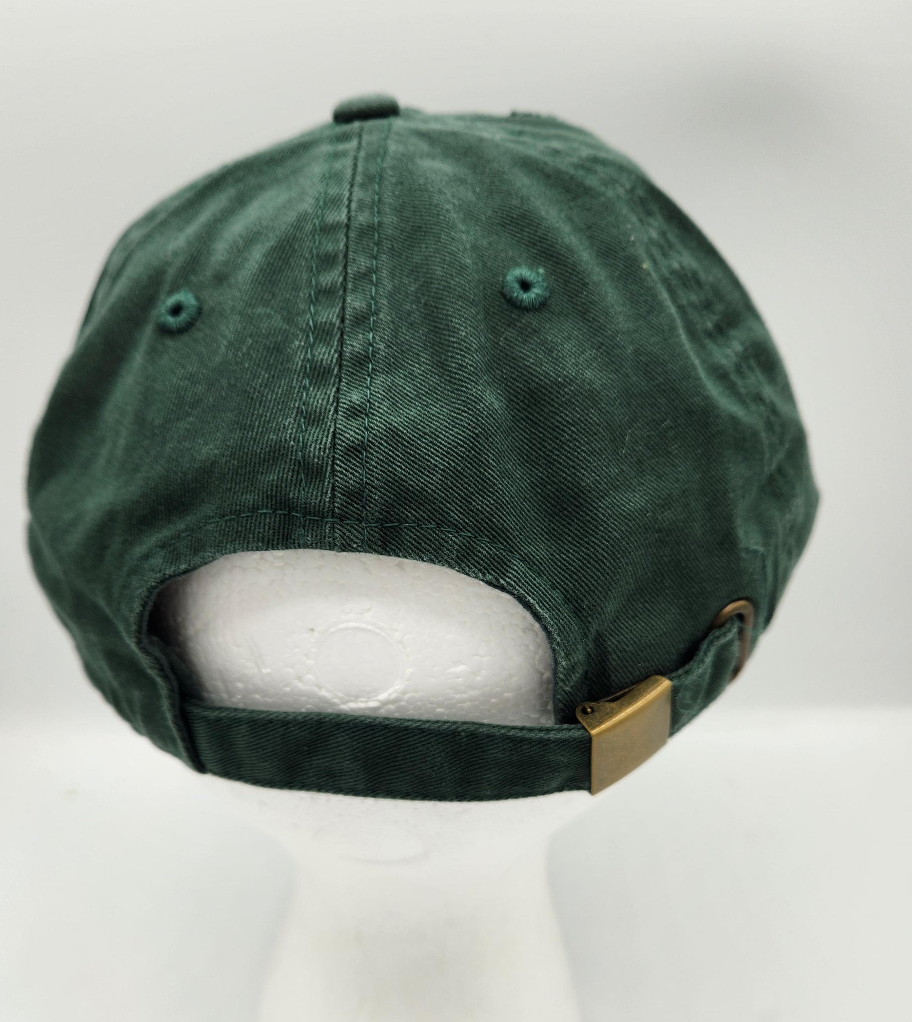This distressed upcycled/handmade baseball hat is perfect for cheering on our Green Bay Packers! Green, gold, and white make up it's color palette.