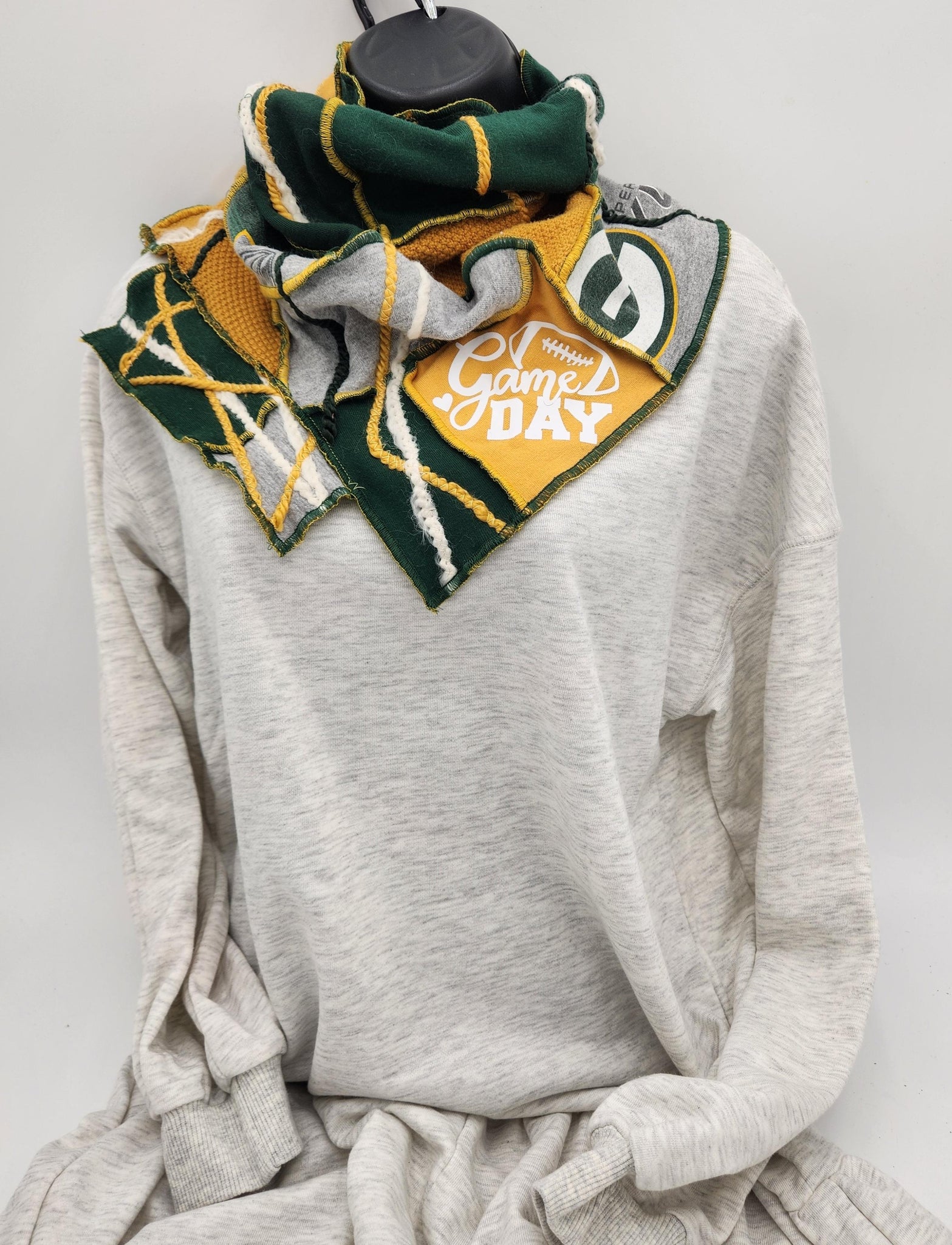 This cowl neck scarf is a one-of-a-kind handmade creation. It is made from quality eco-conscious recycled fabrics and materials. One size fits most. Each item is created with it's own unique personality. There is no fuss with this slip over swag. Just slip over the head, pull the neckline down or fold to your liking and comfort. Made by Josie T. Designs