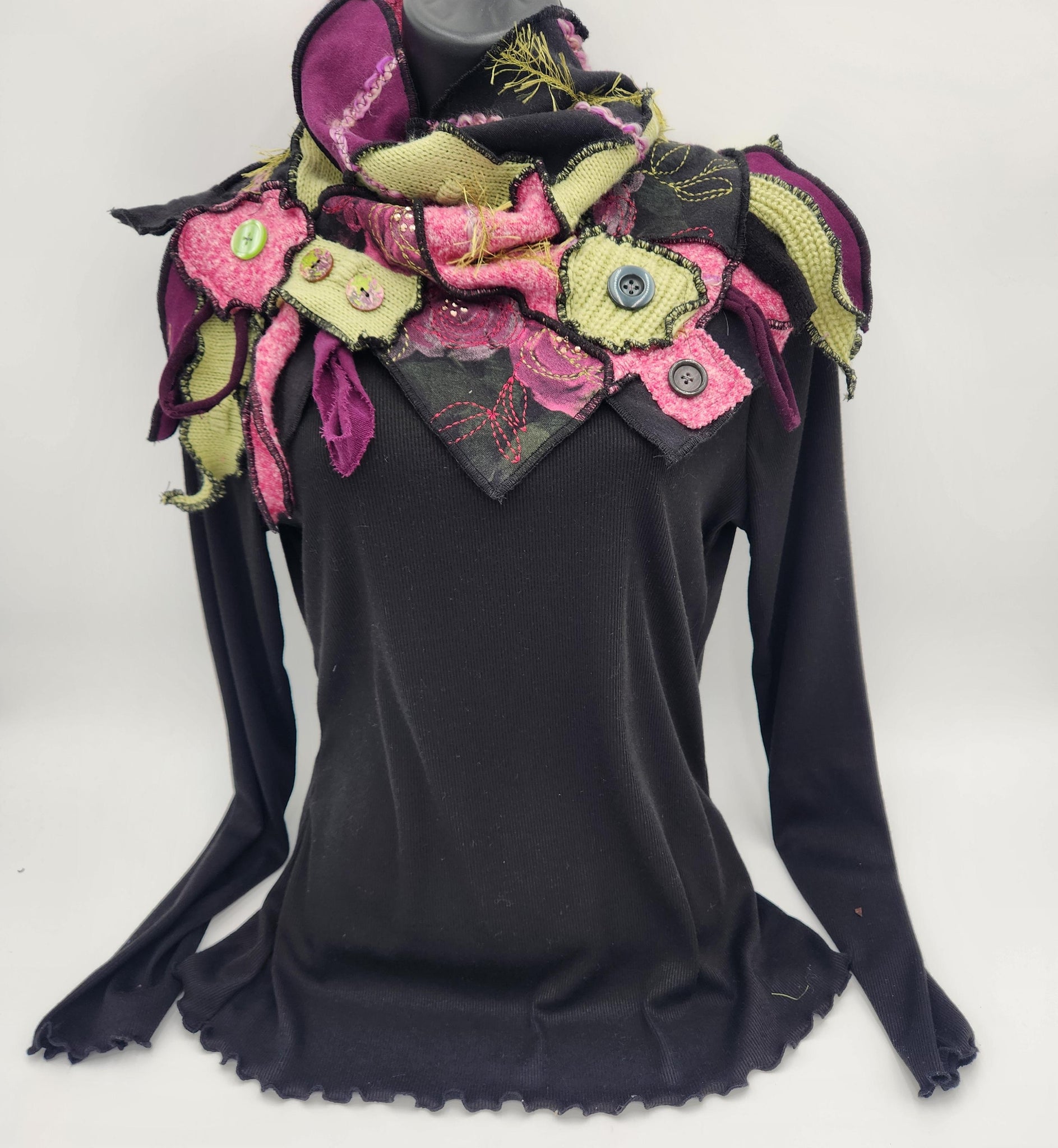 This handmade statement scarf is a true wearable work of art. π